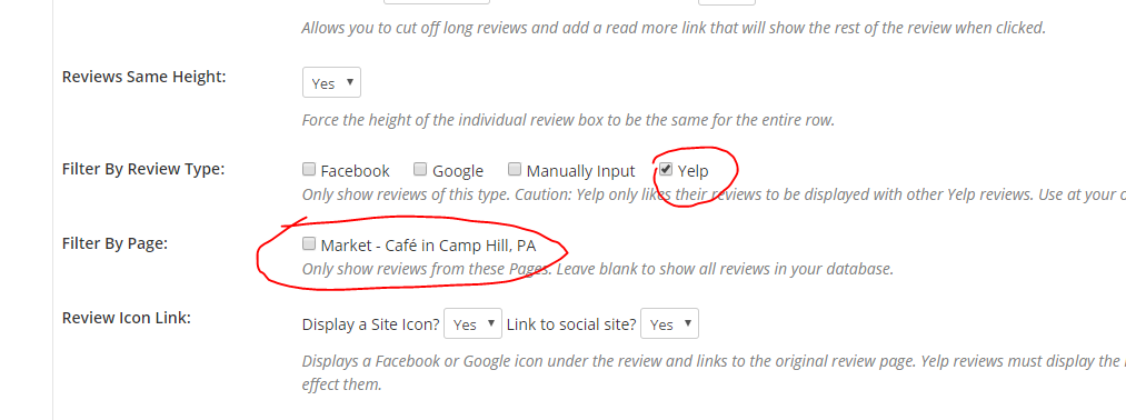 It should be fixed now. I unchecked the Filter by page since you are already filtering by Yelp. That Page filter was for Google only.